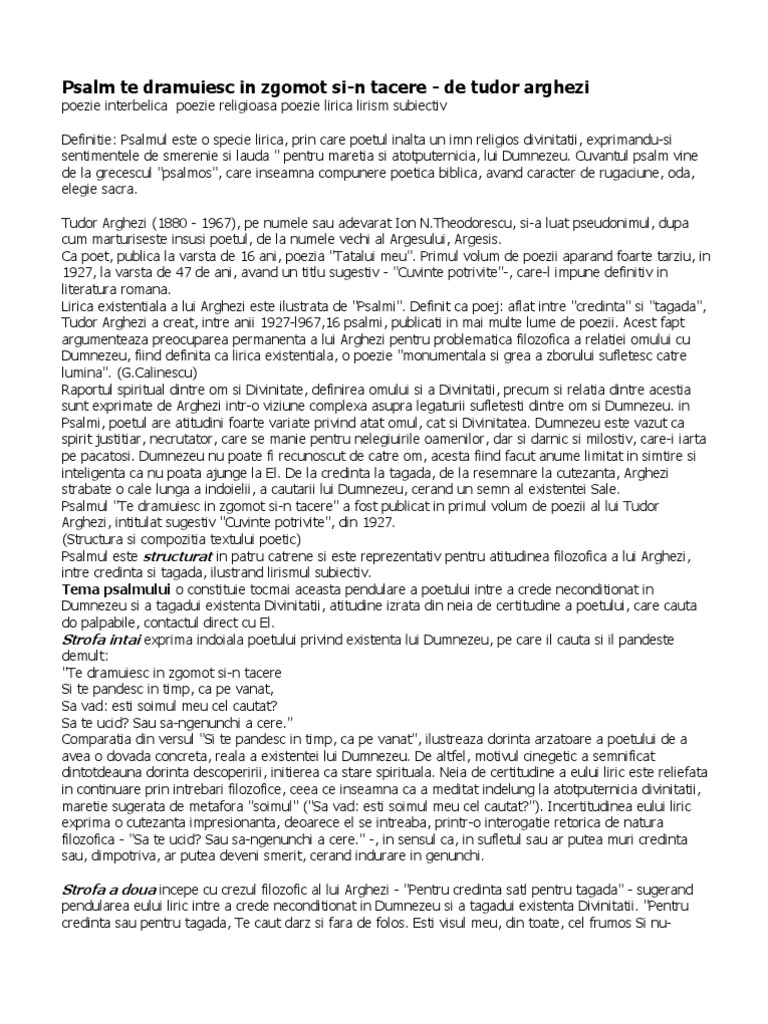 Referat Psalmi De Tudor Arghezi 330871 Graduo