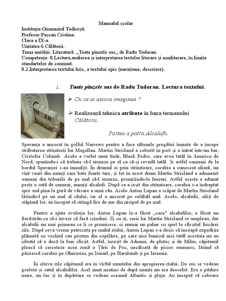 Va Rog Faceti Rezumatul Textului De Mai Jos Toate Panzele Sus De Radu Tudoran Brainly Ro