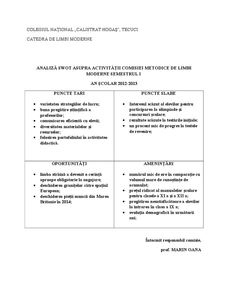 Analiza Swot