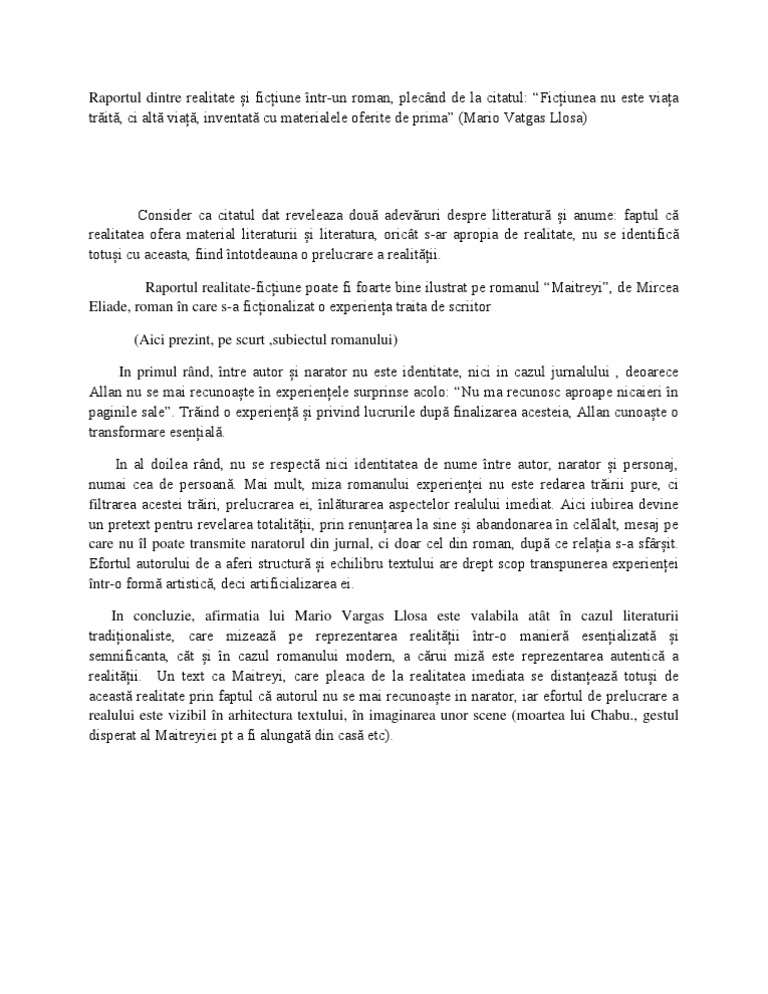 Realitate Si Fictiune In Romanul Maitreyi