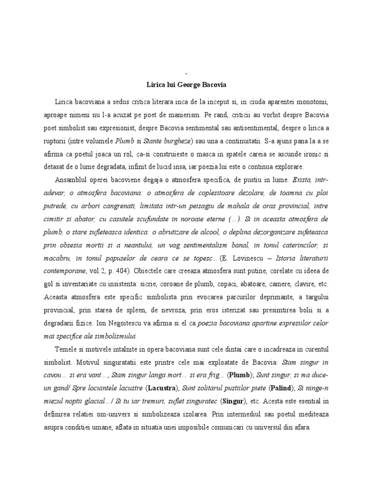 Doc Plumb De George Bacovia Simbolism Comentariu Bac Anca Nicolae Academia Edu