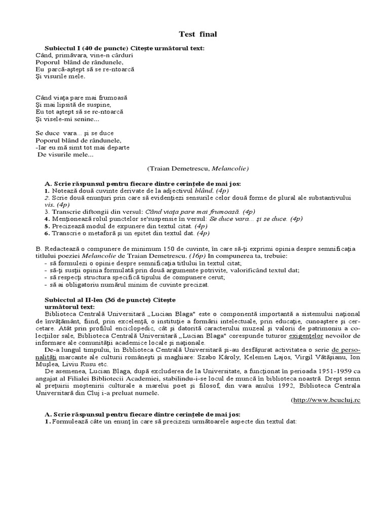 Test Opera Lirică Melancolie Traian Demetrescu