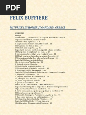 Felix Buffiere Miturile Lui Homer Si Gandirea Greaca Pdf