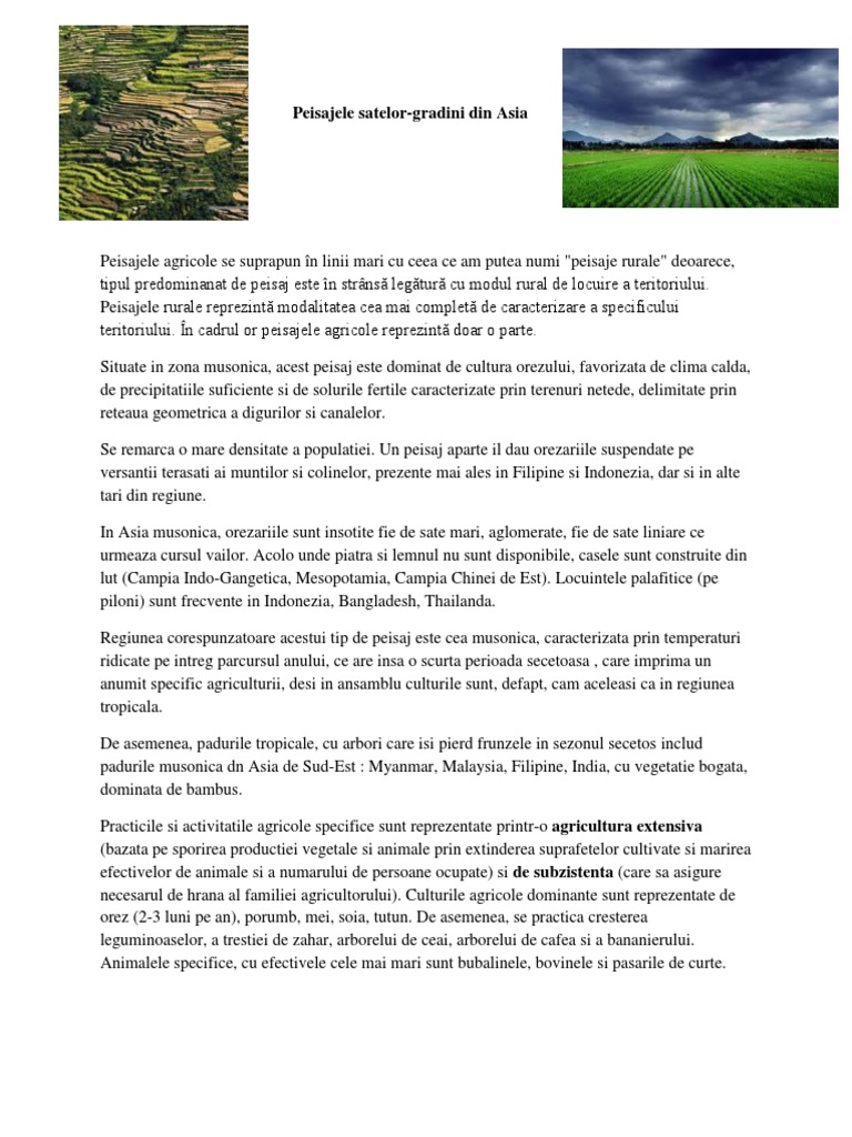Regiuni Si Peisaje Agricole Pe Glob By Florina Sorescu