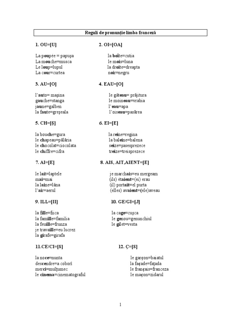 Reguli De Pronuntie Limba Franceza Doc