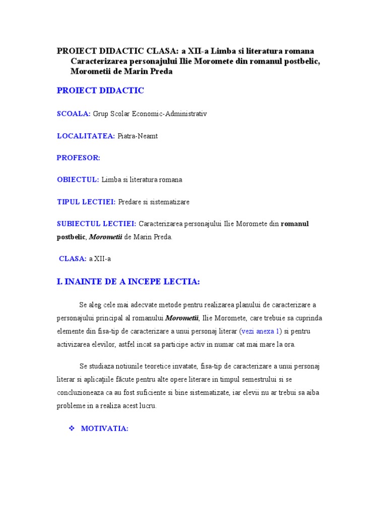 Doc Caracterizare Ilie Moromete Ana Maria Lepădatu Academia Edu