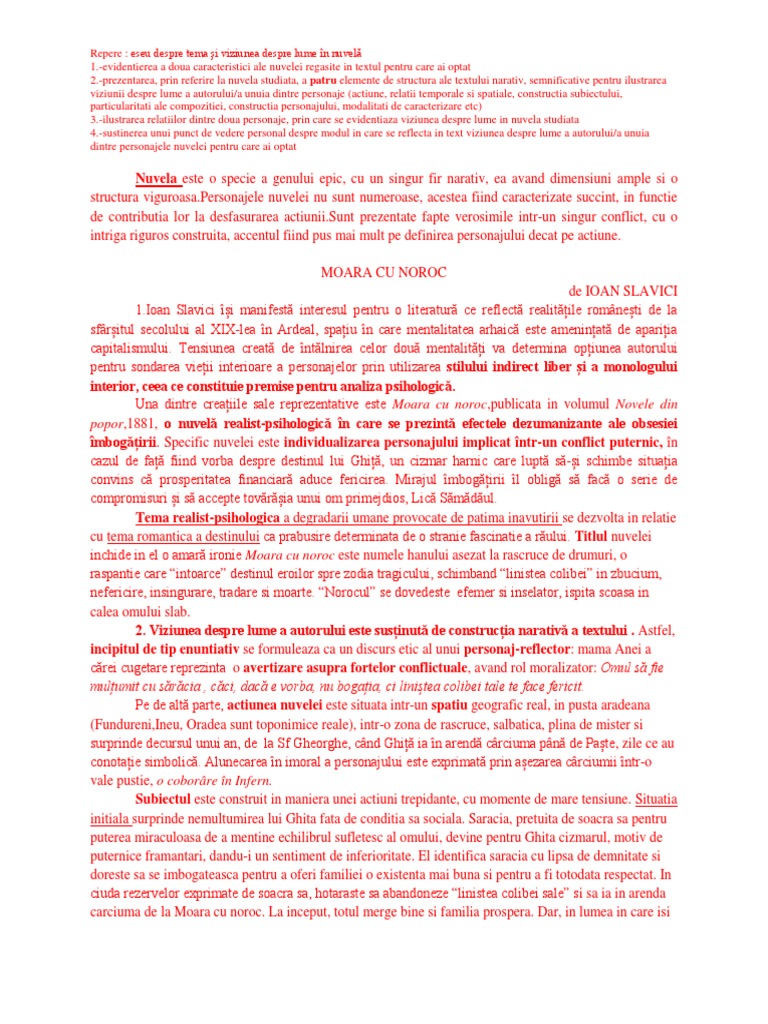 Eseu De Bacalaureat 3 Moara Cu Noroc Wattpad