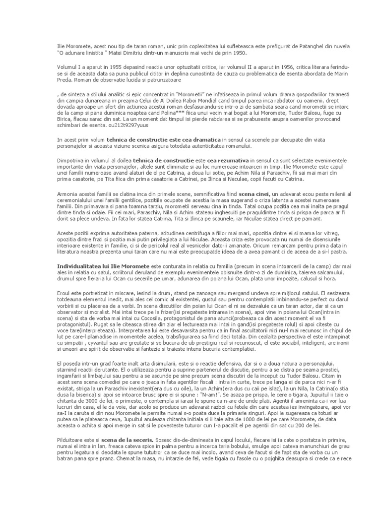Doc Moromeţii De Marin Preda Marcel Boscanean Academia Edu
