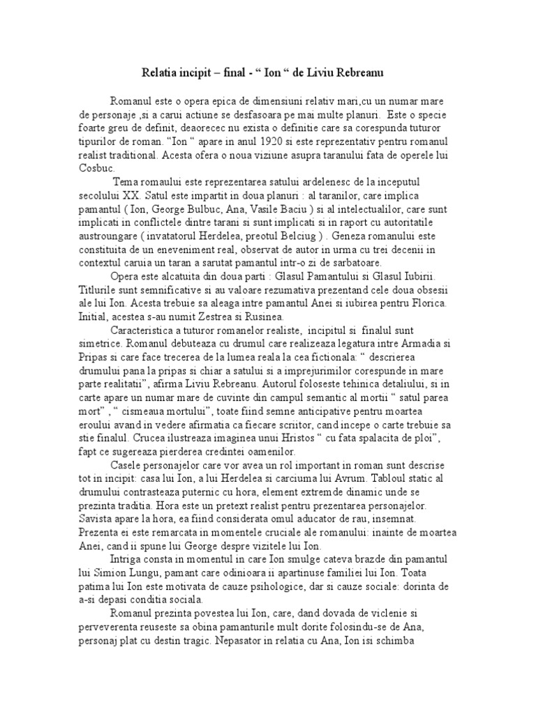 Relatia Incipit Final Din Romanul Ion Brainly Ro