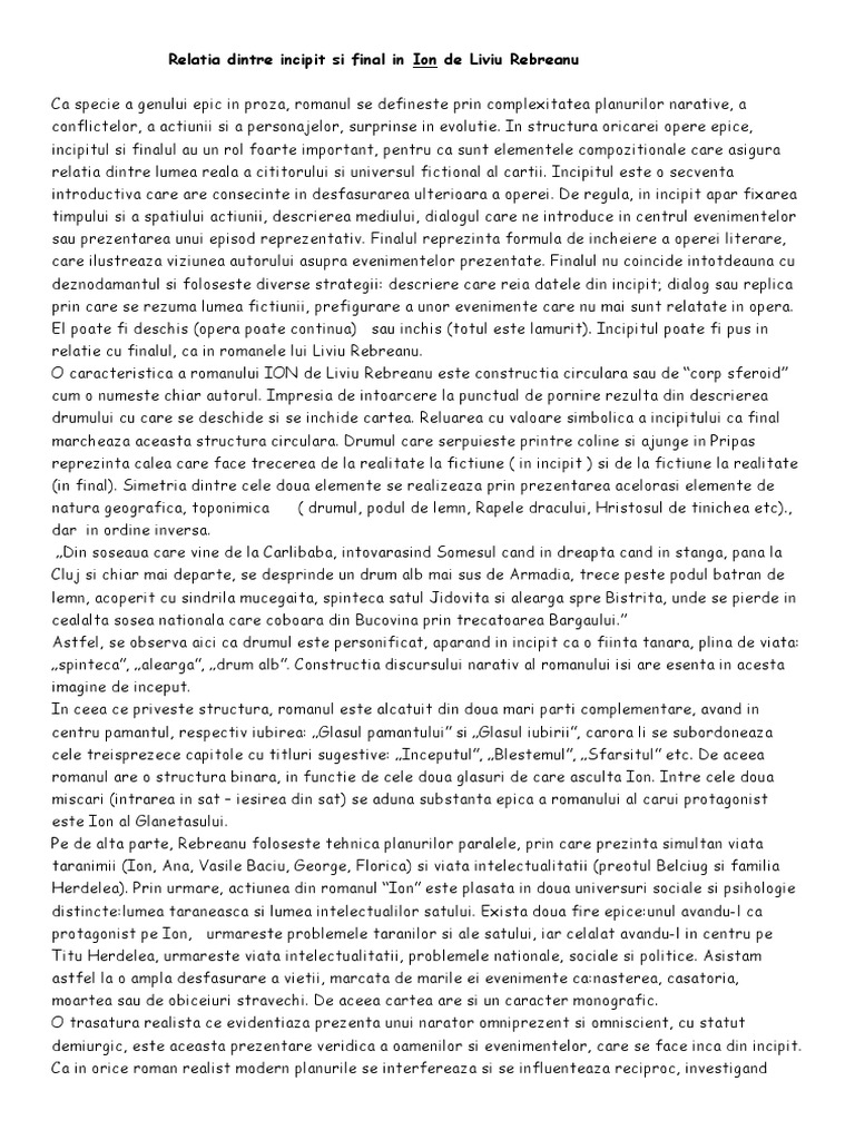 Relatia Dintre Incipit Si Final In Ion De Liviu Rebreanu