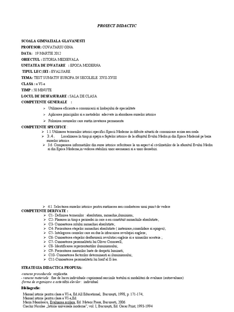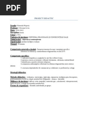 Proiect Didactic Reforma Si Cont Rare For Ma
