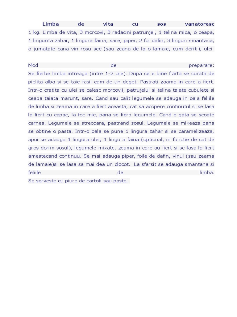 Reteta Limba De Vita Cu Sos Vanatoresc