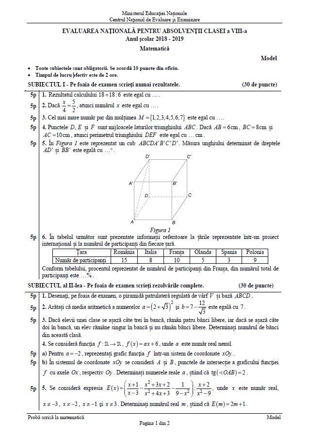 Evaluarea Nationala 2019 Matematica Din 20 06 2019 Subiecte Oficiale Si Barem Edu Ro Clasa A 8 A Jitaruionelblog Pregatire Bac Si Evaluarea Nationala 2020 La Matematica Si Alte Materii Materiale Lectii Formule Exercitii Rezolvate