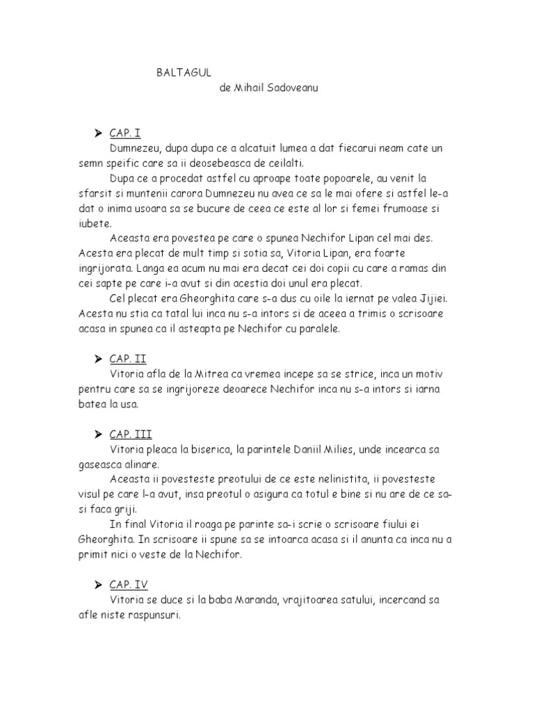 Doc Mihail Sadoveanu Romanul Baltagul Rezumat Pe Capitole Christina Draghici Academia Edu