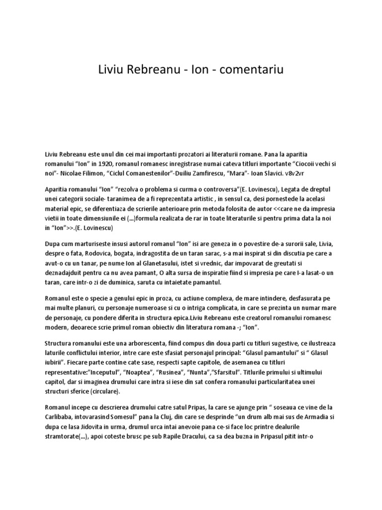 70388853 Ion De Liviu Rebreanu Rezumat Pe Capitole
