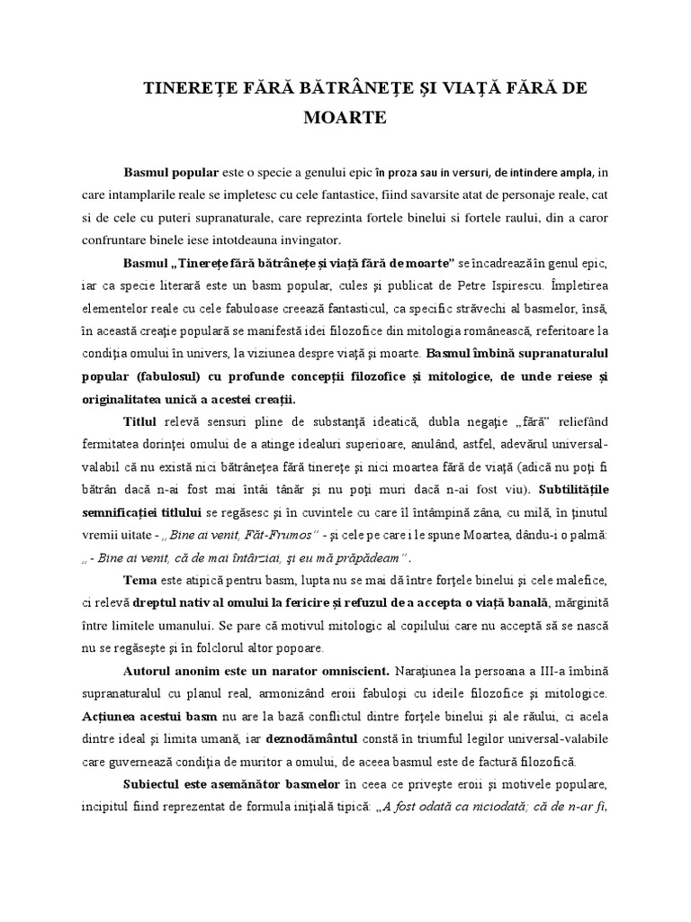 Rezumat Basmul Tinerete Fara Batranete Si Viata Fara De Moarte