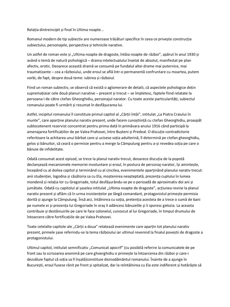 Www Referat Ro Romanul Subiectiv Modern Ultima Noapte De Dragoste I