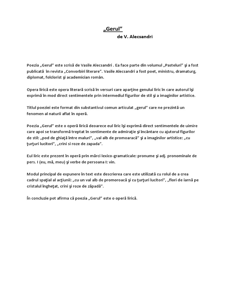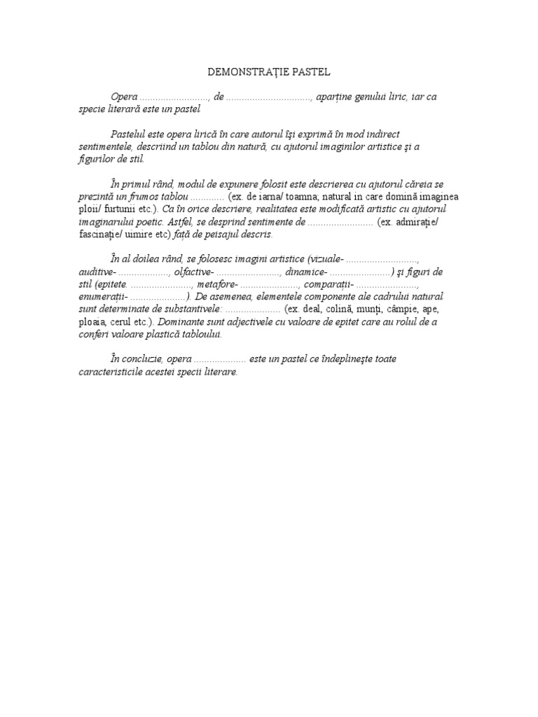 Model De Argumentare Gen Liric