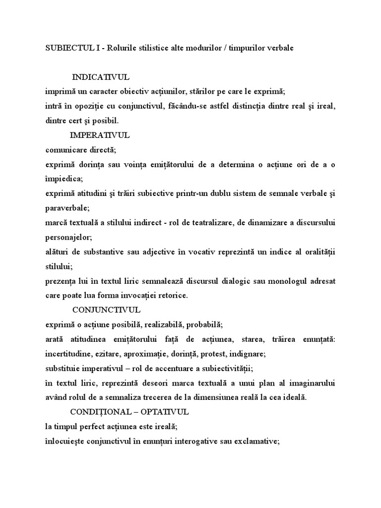Rolul Modurilor Si Timpurilor Verbale Subiectul Ii Bac Romana