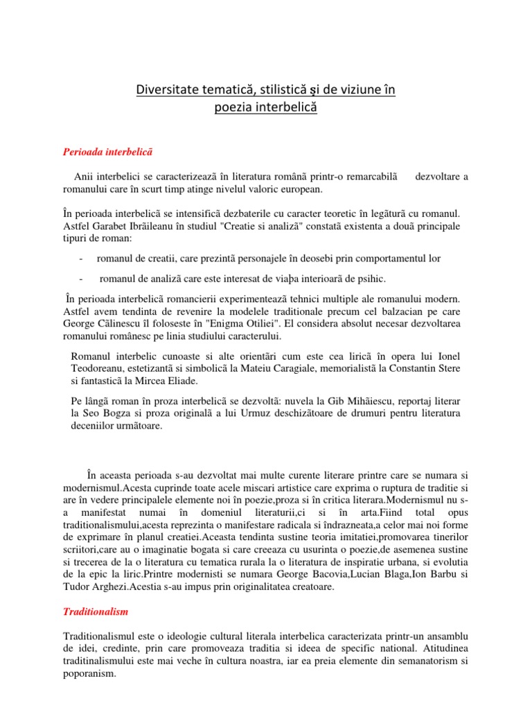 Diversitate Tematica Perioada Interbelica
