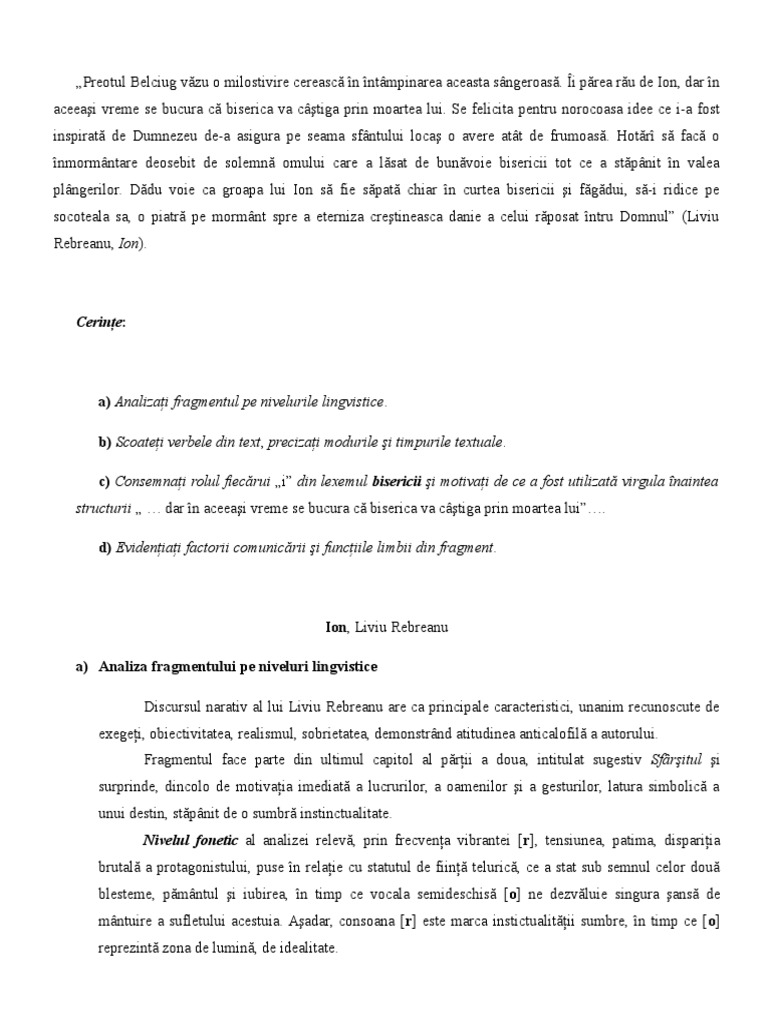 Analiza Unui Text Pe Niveluri Lingvistice