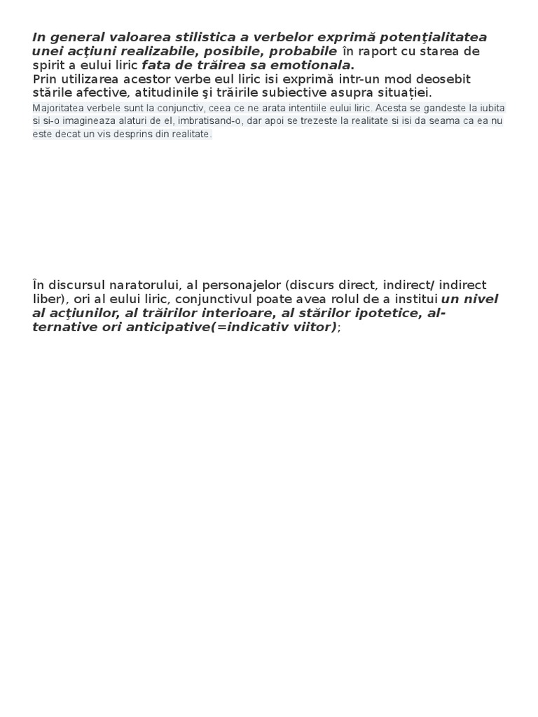 Doc Valorile Stilistice Ale Modurilor Si Timpurilor Verbale Bianca Antochi Academia Edu