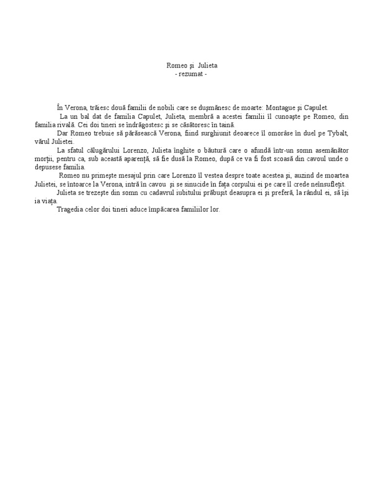 Romeo Si Julieta Rezumat Pe Acte Si Scene