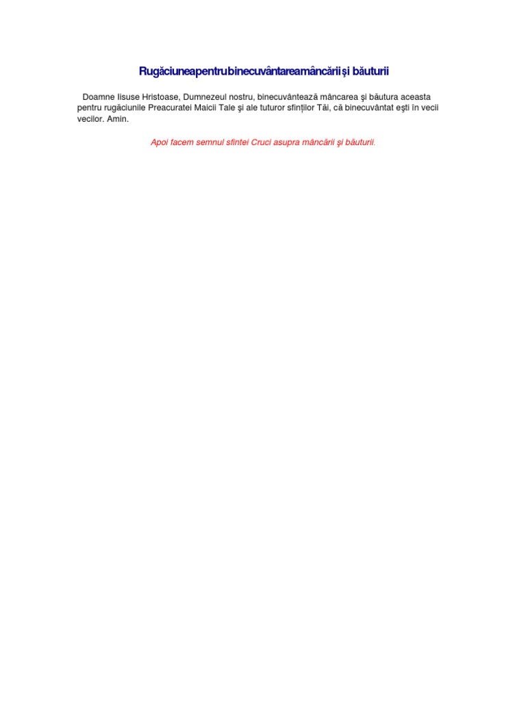 Rugăciunea Pentru Binecuvantarea Mancării Si Băuturii