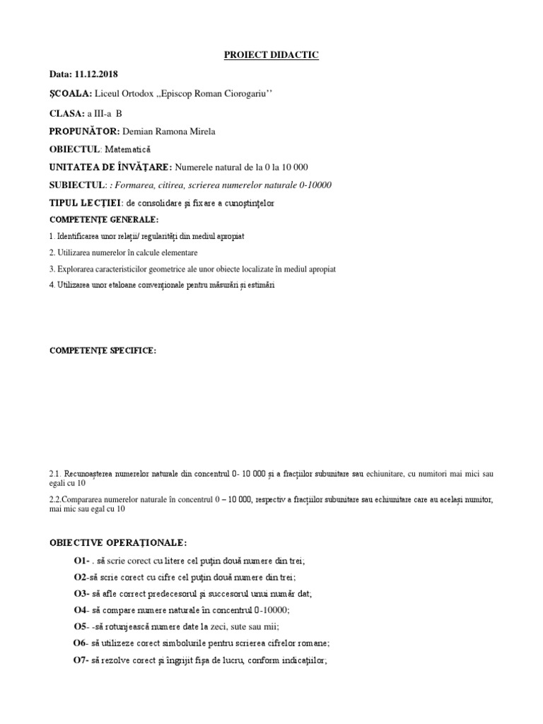 Scrierea Si Citirea Numerelor Naturale In Sistemul De Numeraţie Zecimal