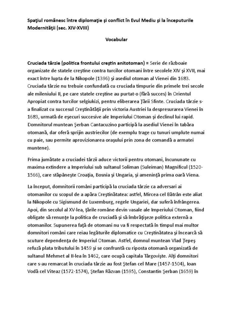 Eseu Despre Spațiul Romanesc Intre Diplomație și Conflict In Secolele Al Xiv Lea Al Xvii Lea Liceunet Ro