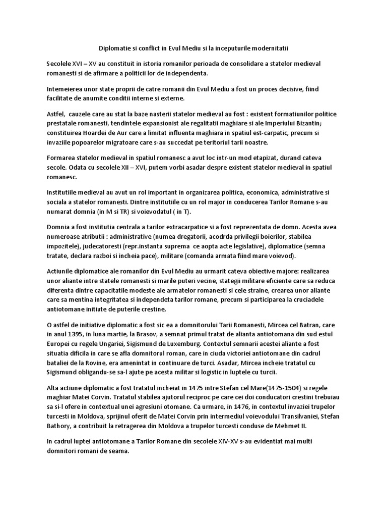 Model De Eseu Tarile Romane Intre Diplomatie Si Conflict In Evul Mediu