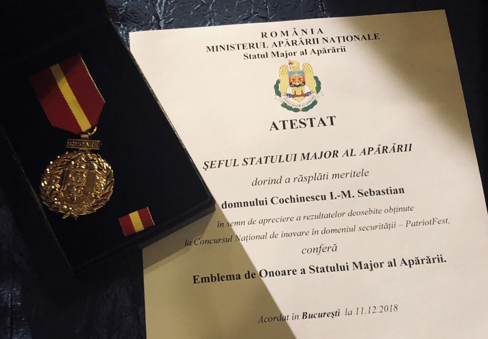 Sebastian Cochinescu On Twitter Last Night I Received The Honor Emblem Of The Romanian Army High Command By Winning The 3rd Prize On The Creativity For Security Section Of The Https T Co Mqreobseg1 Competition