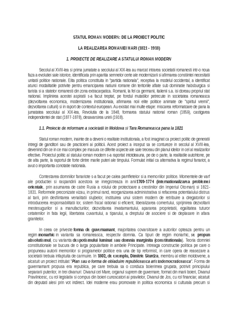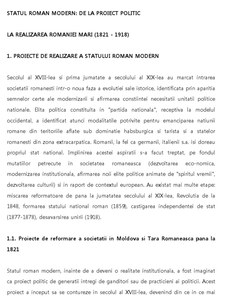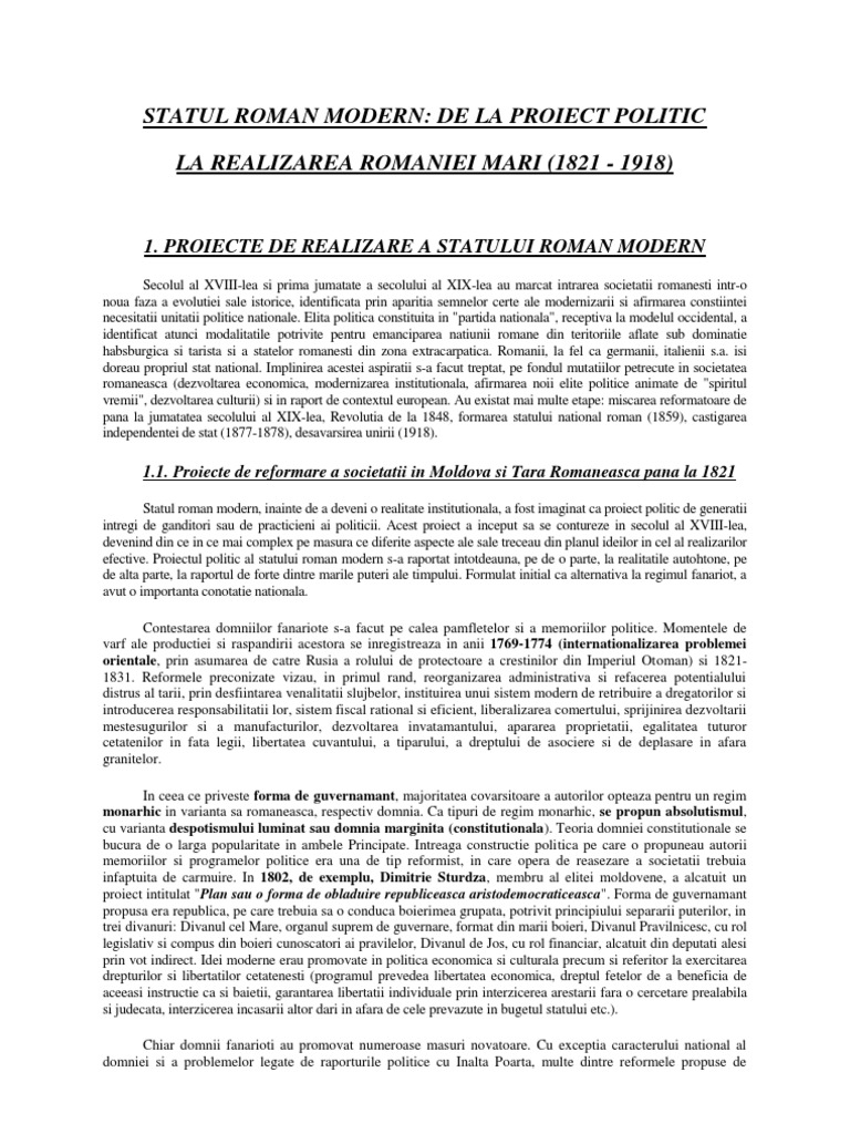 Referat Statul Roman Modern De La Proiect Politic La Realizarea Romaniei Mari 282948 Graduo