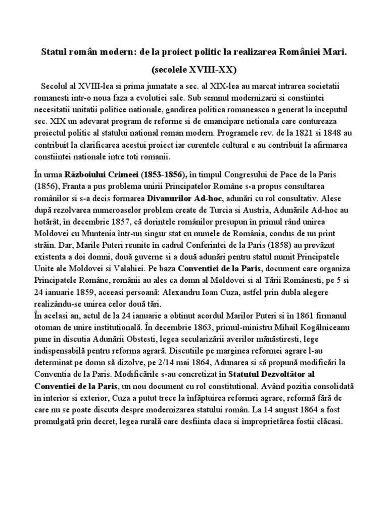 Www Referate Ro Geneza Statului Roman Modern De La Proiect Politic La Realizarea Romaniei Mari 3f5ed