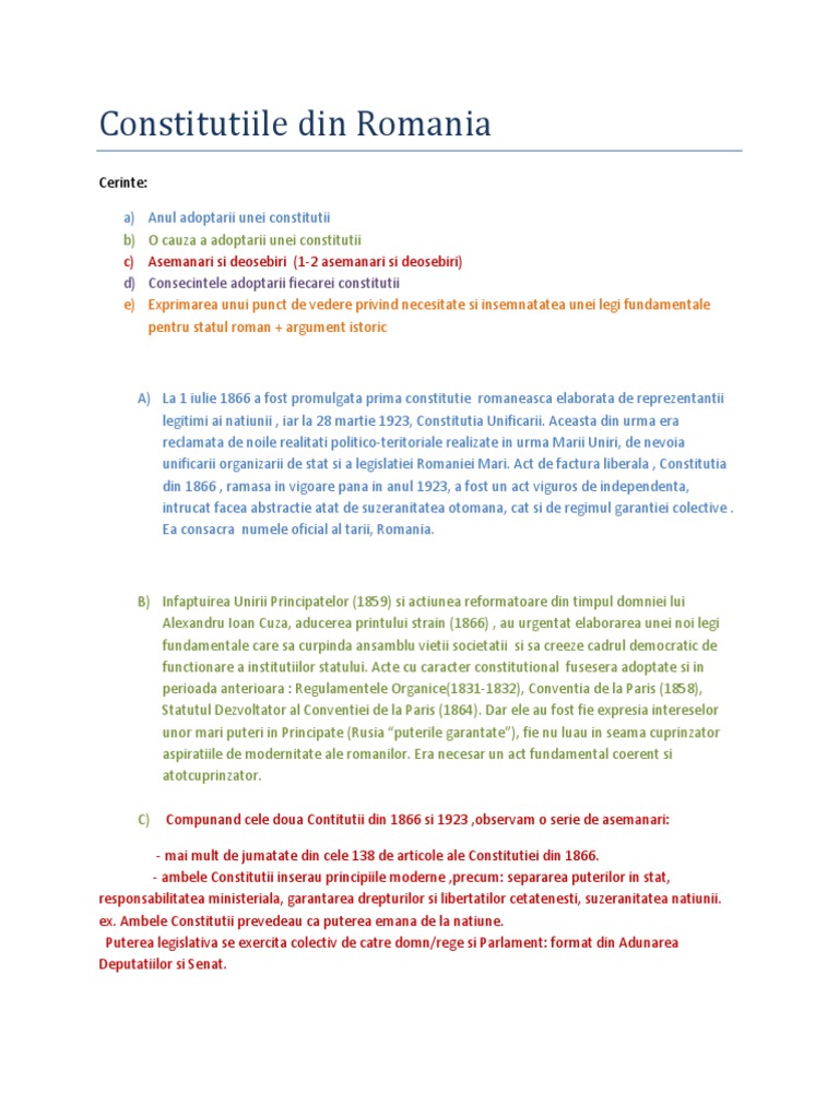 Constitutiile Din Romania Cls Xi A