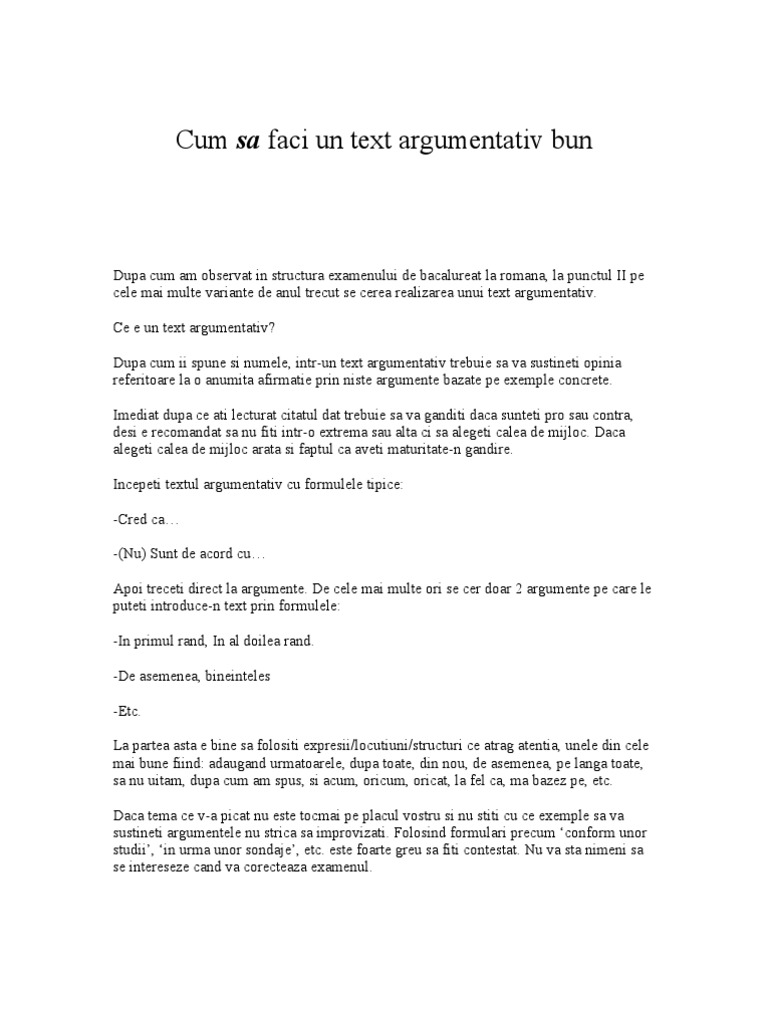 Cum Sa Faci Un Text Argumentativ Bun