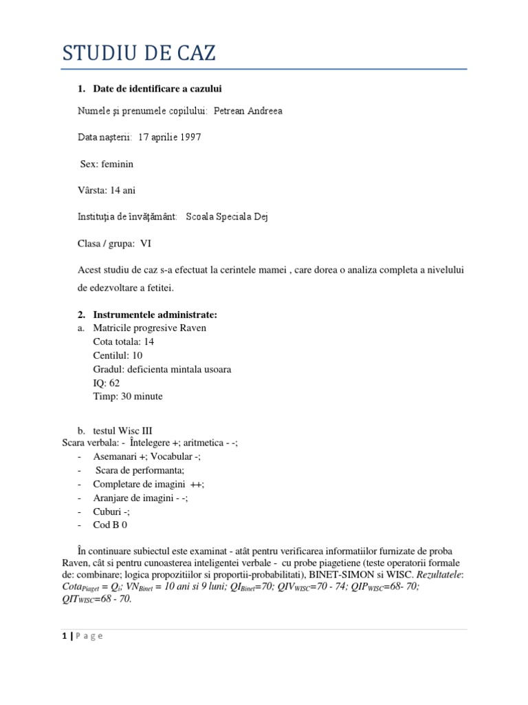 Proiect Studiu De Caz Psihopedagogie 170952 Regielive