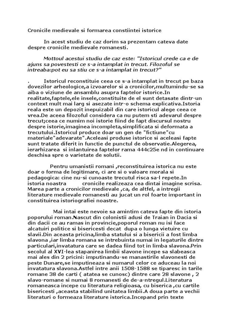 Cronicile Medievale Si Formarea Constiintei Istorice
