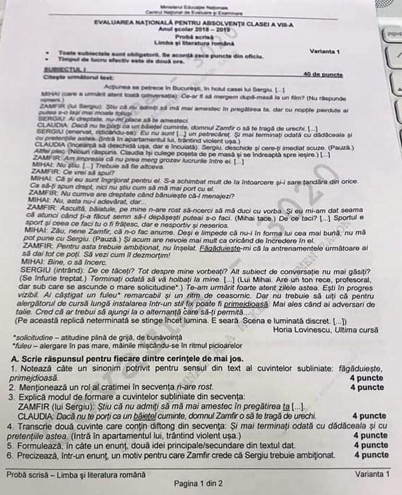 Evaluarea Nationala 2019 Limba Romana Din 18 06 2019 Subiecte Oficiale Si Barem Edu Ro Clasa A 8 A Jitaruionelblog Pregatire Bac Si Evaluarea Nationala 2020 La Matematica Si Alte Materii Materiale Lectii Formule Exercitii